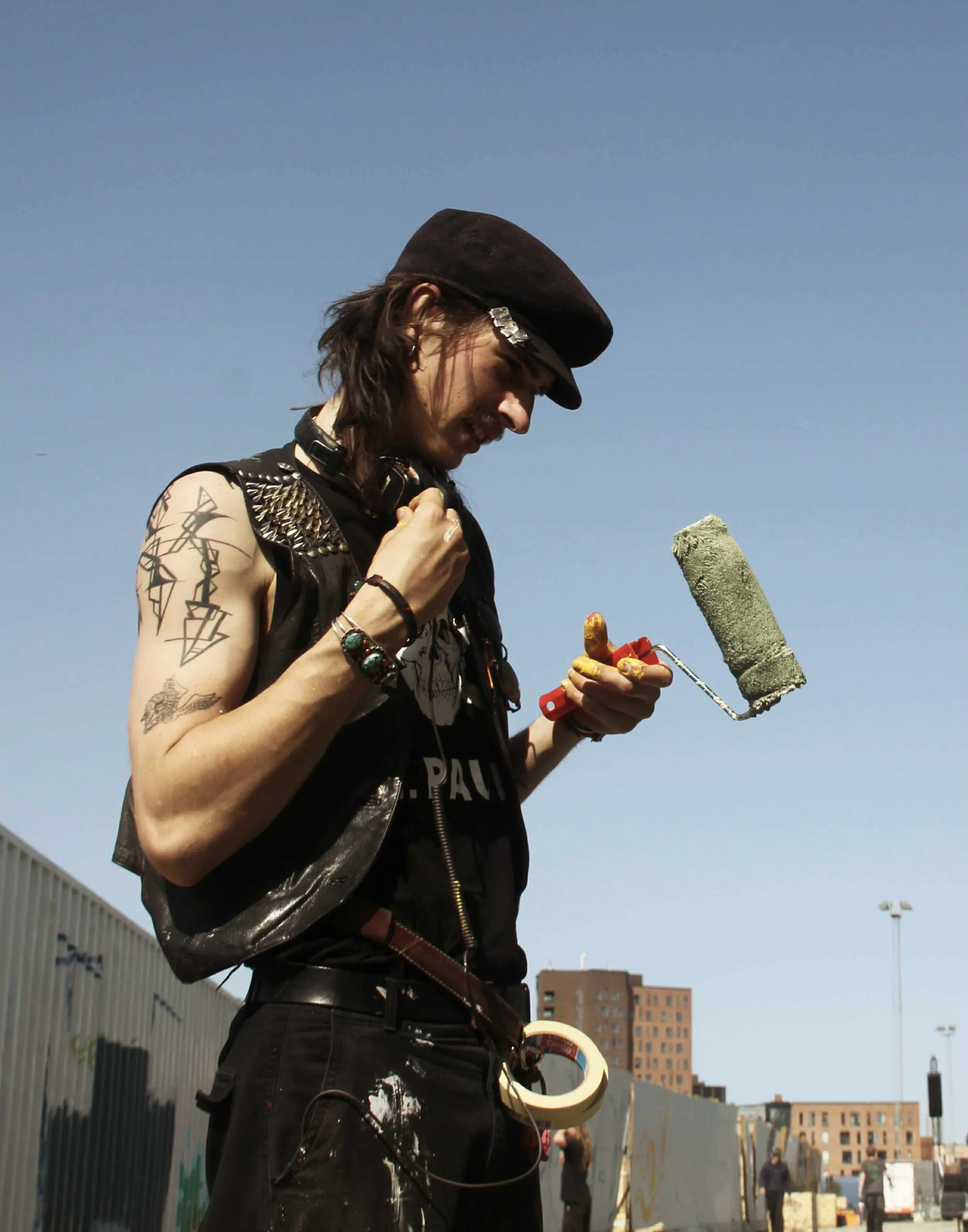 “The cheaper the better” he says, if it is cheap or free it helps with keeping the playfullness of creating art and not having to worry about destroying an expensive canvas.